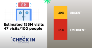 My colleague Jami Kral shared a great breakdown on The Check In about a recent Becker’s article comparing emergent vs. urgent visits to the ED. It’s a quick, insightful read that highlights trends impacting Urgent Care. Read Jami’s full write up here: Visits to ED – Emergent vs. Urgent – The Check In